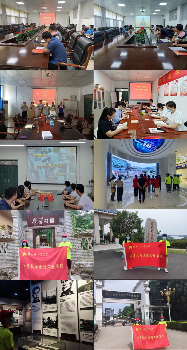 在党的101岁生日到来之际,学院各支部组织开展了主题鲜明、形式多样、广泛参与的系列庆祝活动,以实际行动献礼党的生日。物联网工程系教工党支部开展了庆祝建党101周年诗歌朗诵活动,用诗歌表达对党的无限热爱之情,唱响爱党爱国主旋律;通信工程教工党支部支部开展跟着总书记学习焦裕禄主题党日活动,激励大家不忘初心、牢记使命,永远跟党走;计算机教工党支部开展了红色观影活动,使党员们深刻感受中国共产党的伟大,深植爱党爱国爱民情怀。研究生和本科生党支部开展 “寻访总书记足迹,牢记领袖嘱托”主题党日活动,学生党员分赴大别山、光山县、黄河博物馆、郑州煤矿机械集团股份有限公司等地寻访习近平总书记的足迹,牢记嘱托、踔厉奋进,激励同学们把对祖国血浓于水与人民同呼吸共命运的情感贯穿学业全过程,融汇在事业追求中。