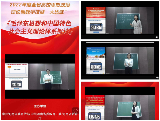 由中共河南省委宣传部、中共河南省委教育工委、河南省教育厅主办的2022年度全省高校思想政治理论课教学技能“大比武”活动于6月11日至6月20日持续开赛。在我校思政课教学技能“大练兵”活动的基础上,马克思主义学院推选6名老师参加全省“大比武”竞赛。