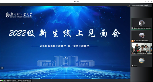9月4日上午10时,计算机与通信工程学院通过腾讯会议直播的形式召开2022级新生线上见面会,学院班子成员、各系主任、党政办公室、团委、学工办、研管办相关老师及2022级全体专职辅导员出席会议,共计1365名2022级本科生和研究生线上参会。会议由学院党委副书记王艳军主持。