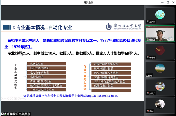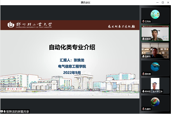 2022年9月4日上午10:00-11:00时,电气信息工程学院召开自动化类专业介绍线上会议。会议由自动化系主任张焕龙老师主持,轨道交通信号与控制系主任江泳老师、机器人工程系主任贺振东老师、自动化类相关教师和辅导员,自动化类2022级全体学生参会。