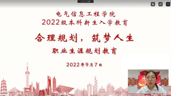 9月7日晚,电气信息工程学院线上开展2022级新生“合理规划,筑梦人生”职业生涯规划教育。电气信息工程学院就业专职辅导员廉琼、学生工作服务中心成员和2022级全体新生参加了此次会议。