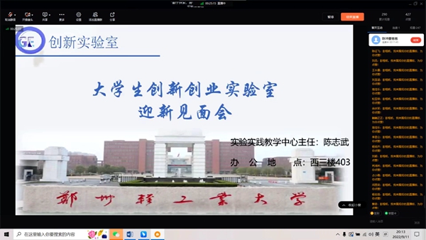 2022年9月11日,电气信息工程学院成功举办了“勤于探索,勇于创新,创造未来”实验室线上宣讲,宣讲主要由实验实践教学中心主任陈志武老师主讲,2022级全体新生参加。