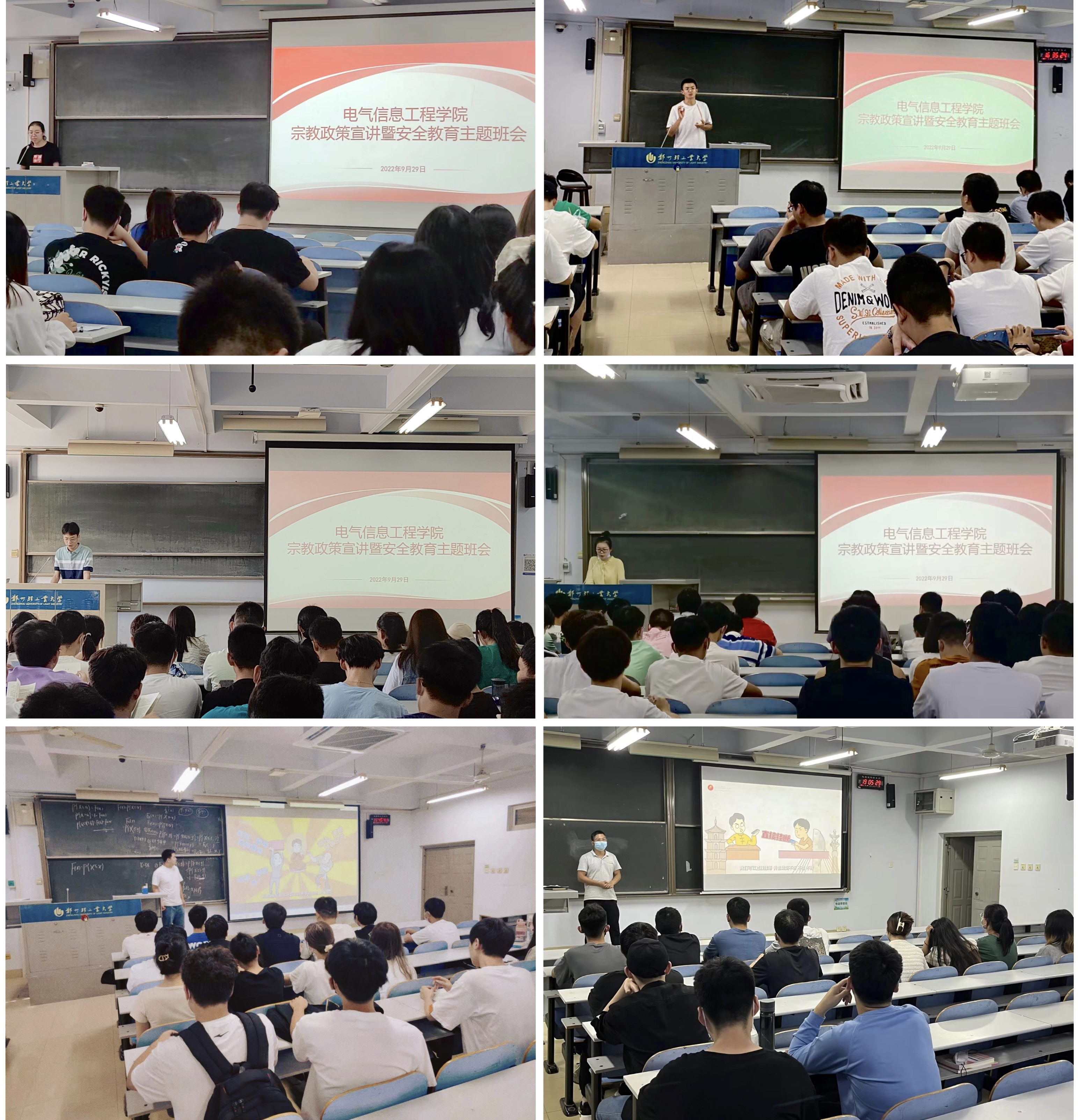2022年9月28日、29日,电气信息工程学院在各年级面向全体学生以线上线下相结合的方式开展宗教政策宣讲暨安全教育主题班会。各年级辅导员主持班会。