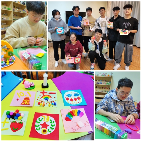 活动开始前,给大家分发手工所需的工具和材料,同学们有序在一楼大厅自行组队共同完成手工作品,并由专业的指导老师讲解配色、造型设计、工具使用等超轻粘土DIY的制作步骤和注意事项。接着,同学们便开始制作,在大家的仔细研究,互相启发下,一个个精美的作品呈现在大家眼前。更有一些同学不走寻常路,用独特的见解和创意,做出了五星红旗模型、月球基地等作品。活动最后,指导老师们在这些作品中评出了一等奖,二等奖,三等奖作品,以及两个最佳创意奖,并颁发了精美奖品。