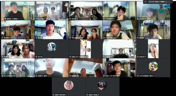活动通过线上腾讯会议平台,以心理团体辅导和心理班会两种形式展开。各班纷纷以宿舍为单位,开展线上心理团体辅导活动,首先,韩老师带领心理委员们通过团体辅导的热场活动,带领同学们活跃气氛、相互认识,调动线上活动的积极性。各宿舍分别进行20分钟的宿舍风采展示,活跃了宿舍气氛,增进了班级同学的亲密度,全体同学在欢笑声中合影留念。随后,各班心理委员围绕着“如何适应大学生活”“疫情下的宿舍生活”和“心理健康的6个小忠告”等主题开展班级心理健康教育班会,在班会中,分别从什么是心理健康、如何调节大学生的隔离情绪和如何适应大学生活三方面,给新生传递心理健康知识,缓解心理压力,唤起积极情绪。
