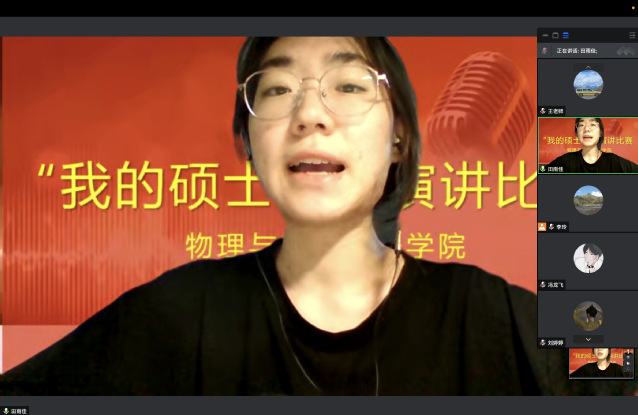 为进一步促进研究生自觉树立职业生涯规划意识,科学规划硕士阶段的学习目标,营造浓厚的学习氛围。近日,物理与电子工程学院线上举办了“我的硕士路”主题演讲比赛,学院党委副书记李玲、全体辅导员和2022级研究生参与了活动。