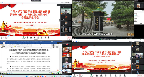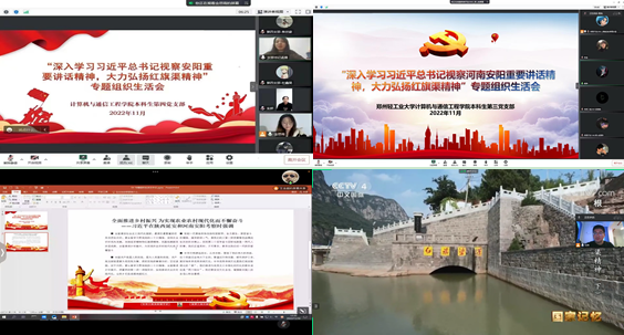 为深入学习贯彻党的二十大精神和习近平总书记视察河南安阳重要讲话精神,深刻领会红旗渠精神的丰富内涵和时代价值,计算机与通信工程学院各党支部召开以“深入学习习近平总书记视察安阳重要讲话精神,大力弘扬红旗渠精神”为主题的专题组织生活会。