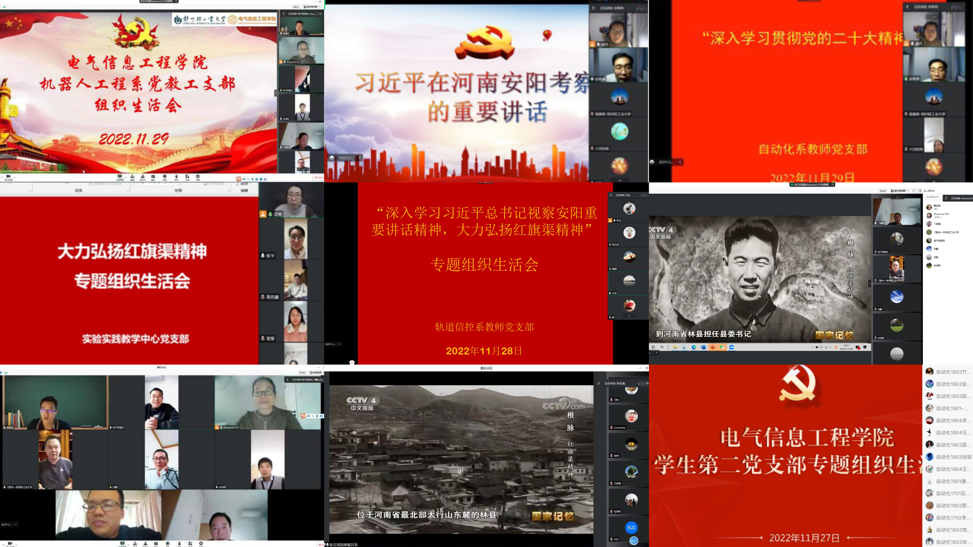 11月20日至30日,电气信息工程学院各党支部认真组织召开“深入学习习近平总书记视察安阳重要讲话精神,大力弘扬红旗渠精神”专题组织生活会。学院领导班子党员领导干部以普通党员身份参加所在党支部组织生活会,带头认真学习,结合实际研讨交流,积极发挥示范引领作用。