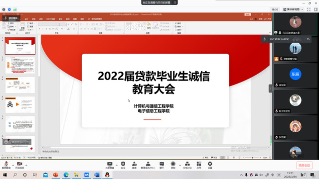 为进一步增强贷款毕业生的诚信意识、法律意识,使其做到认真履行国家助学贷款合同义务,诚实做人、诚信做事,2022年3月24日,计算机与通信工程学院召开2022届贷款毕业生诚信教育大会。学院党委副书记王艳军老师,资助工作马贝贝老师、王建新老师以及2022届贷款毕业生参加会议。