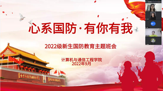 为深入贯彻习近平总书记强军思想,将全民国防的理念根植于师生心中,激发学生的民族自豪感和自信心,增强学生的国防意识,使学生了解国防、心系国防,让国家观念和爱国意识在学生心里扎根,9月17日计算机与通信工程学院召开2022级新生国防教育主题班会,49个新生班级参与了此次活动。