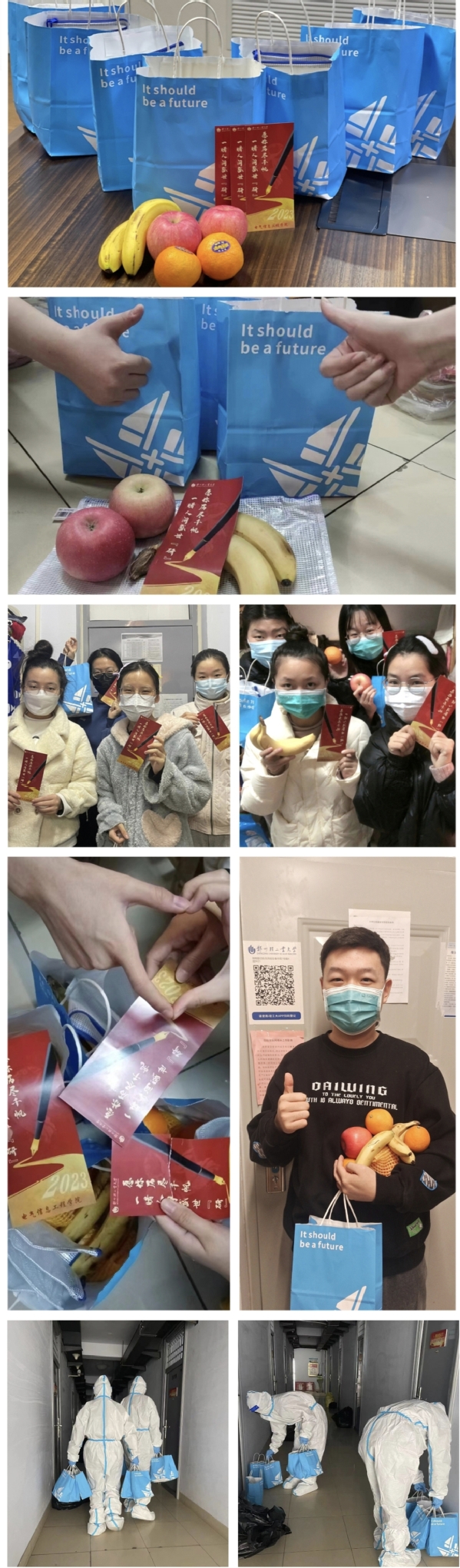 本学期自疫情发生以来,学院线上线下相结合,密切关注学生的思想、学习、生活动态,坚持每日班会为学生解疑答惑、排忧解难,坚持为学生代购考研书籍、转送学习用品、分发防疫物资等,全方位尽心尽力做好管理服务,保障学生健康安全、思想稳定。学院精心准备的爱心水果和祝福卡片更是让学生暖到心底。