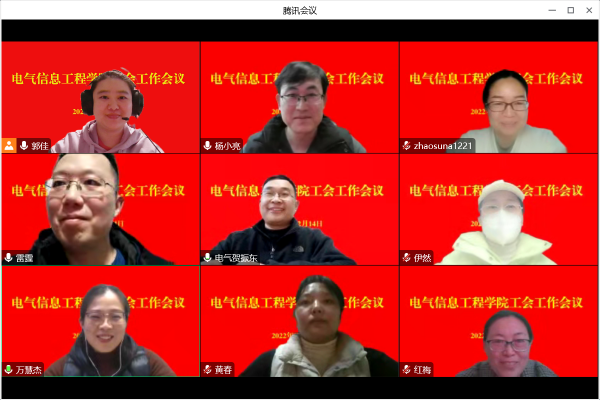 12月14日下午,电气信息工程学院线上召开期末工会工作会议,学院工会委员、各工会小组长参会。会议由学院工会主席万慧杰主持。