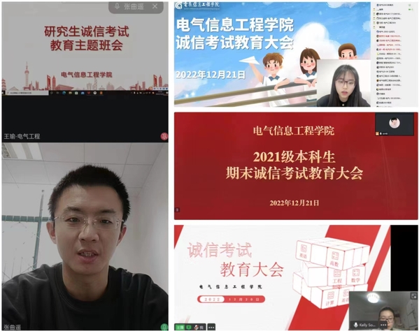 加强严肃考风考纪,12月20日至22日,电气信息工程学院各本科生、研究生班级线上召开诚信考试教育主题班会。