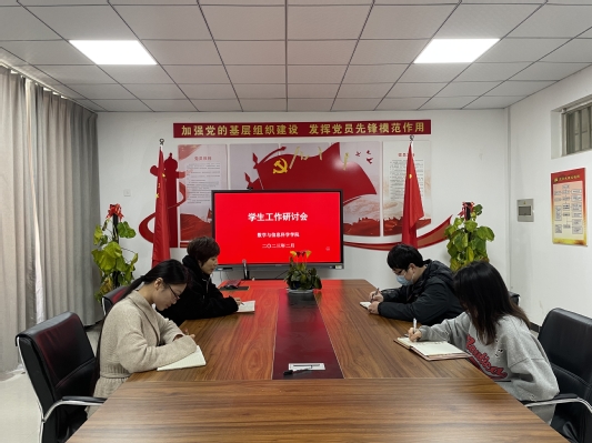 为不断提升教育管理与思政工作能力和水平,扎实推进新学期学生工作稳步发展,2月20日上午,数学与信息科学学院召开2023年春季学期学生工作研讨会,学院党委副书记王燕翔及全体辅导员参加会议。