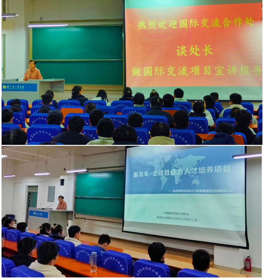 2023年2月20日下午,我校国际合作与交流处谈红玲处长应计算机与通信工程学院的邀请,在计算机楼217教室为学院研究生做国际交流项目宣讲报告。相关负责老师以及全体研一研二同学参加了此次会议。
