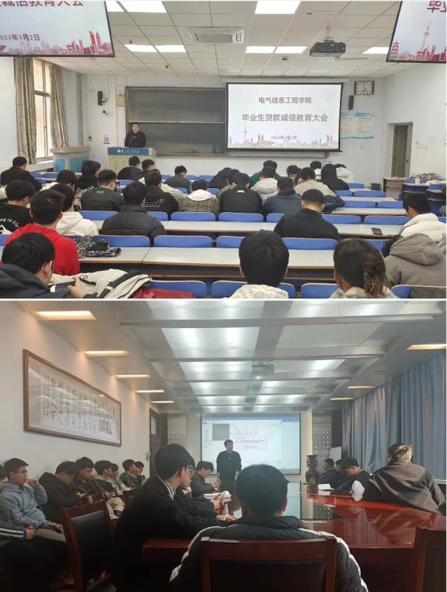 2023年2月23日、3月2日,电气信息工程学院分别在西二楼301、教三楼107召开高校助学贷款毕业生诚信教育大会。学院党委副书记万慧杰、辅导员刘丰阳、2023届本科和研究生贷款毕业生参加。