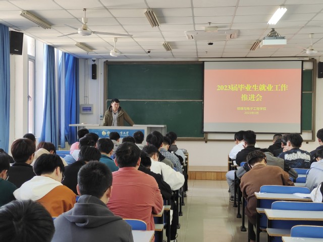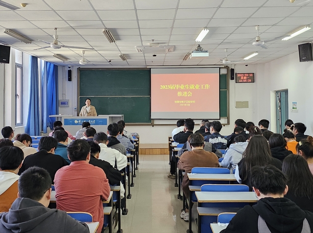3月13日中午,物理与电子工程学院在二教楼704召开2023届毕业生就业工作推进会,学院党委副书记李玲、就业工作专职辅导员王伟夙,2019级全体本科生参加了会议。
