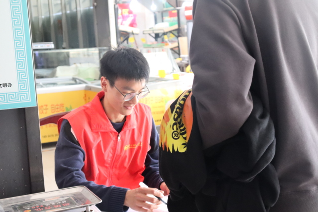 活动莘苑餐厅在一楼设置总服务台,所有学生志愿者在文明督导过程中身穿统一志愿者服,对学生文明就餐行为进行引导,并且及时收集同学意见进行反馈。督导员对失物进行登记等待学生领取,同时志愿者监督餐厅出口处卫生,督促同学们自行放置餐具,切实营造良好的就餐氛围,提升同学们就餐的幸福感,同学们在就餐过程中发生任何问题都可以与志愿者进行沟通交流,为用餐学生带来了切实的便利服务。