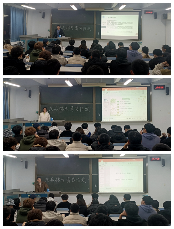 会上,王子涵同学罗列相关科目的参考资料并提供了相对应的学习方法,详细解答了备考过程中可能遇到的各种问题。贾连斐同学则从整体的大环境进行分析,介绍了自己为什么会选择考取国家电网以及国家电网相对于其他企业的优势所在,并提醒各位同学不管选择哪种目标都要提前做好计划,不做无头苍蝇。马田宇同学详细介绍了自己备考过程中的学习方法以及时间规划,鼓励同学们坚定目标,找到适合自己的学习方法进行学习。大家就自己的困惑和疑问进行了交流,现场气氛热烈。