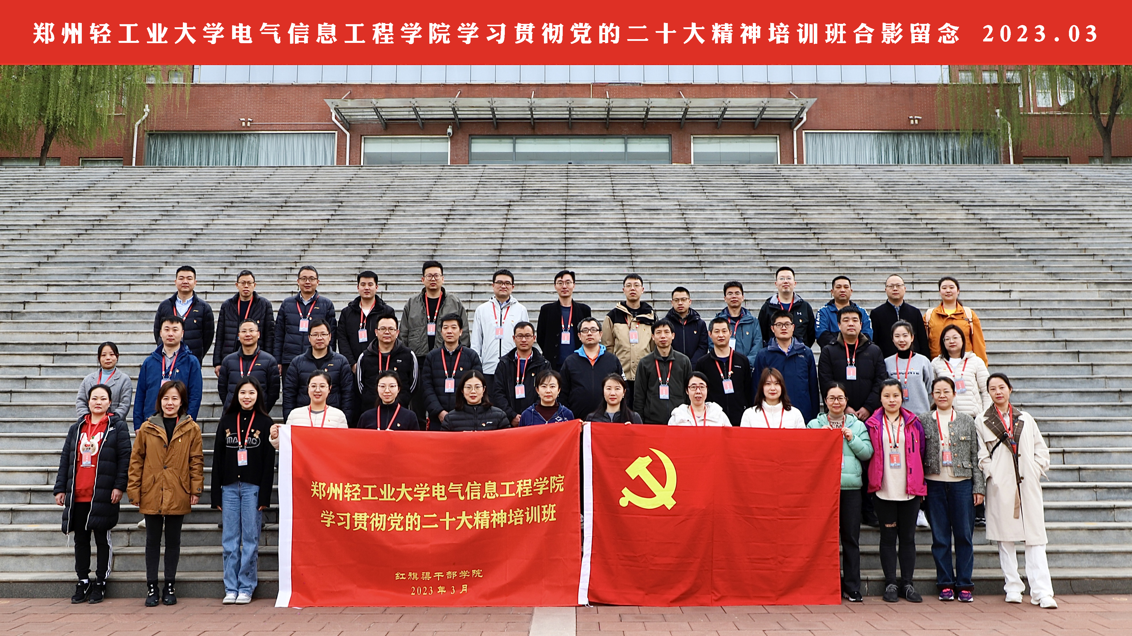为深入学习贯彻党的二十大精神,发扬红旗渠精神,3月24日至26日电气信息工程学院赴红旗渠干部学院举办学习贯彻党的二十大精神培训班。学院党委委员、教师党员参加了本次培训。