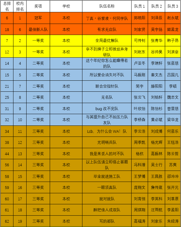 经过参赛选手们争分夺秒的比赛,下午,本次大赛闭幕式及颁奖仪式在图书馆北报告厅隆重举行,仪式按照校外特别奖,三等奖、二等奖、一等奖,最佳新人奖、冠军奖顺序依次进行颁奖。来自我院移动软件21级的郑皓阳、刘泽辰和赵永斌同学组成的队伍荣获该比赛冠军。冠军队伍代表郑皓阳发表获奖感言,在他的发言中,可以感受到轻大IT学子的学习激情和用代码书写未来的信念。最后,我校ACM总教练李晔老师总结,对获奖选手表示祝贺,同时寄语在竞赛中获得优异成绩的同学能够在接下来的河南省赛乃至亚洲区域赛中为学校争光。并希望同学们更要以这次比赛为起点,在学习中不断取得新的辉煌!