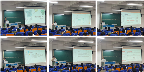 首先,邹老师向同学和老师们总结了2019级本科生考研录取的整体情况,提醒同学们注意,选择比努力更重要,过程比结果更重要,坚持比过程更重要。鼓励同学们咬定青山不放松,不负青春,“研”而有行,奔向更优秀的自己,勉励同学们勇敢逐梦,脚踏实地,积极备战,一战成硕,表达对2020级同学的期盼。