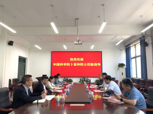 张骁对卜显和院士一行的到来表示热烈欢迎。他简要介绍了学校基本情况,对卜院士多年来对学校工作的支持表示感谢,欢迎卜院士对学校建设多提宝贵意见和建议。材料与化学工程学院副院长张永辉汇报了近年来学院和重点实验室在学科、科研等方面的建设情况。