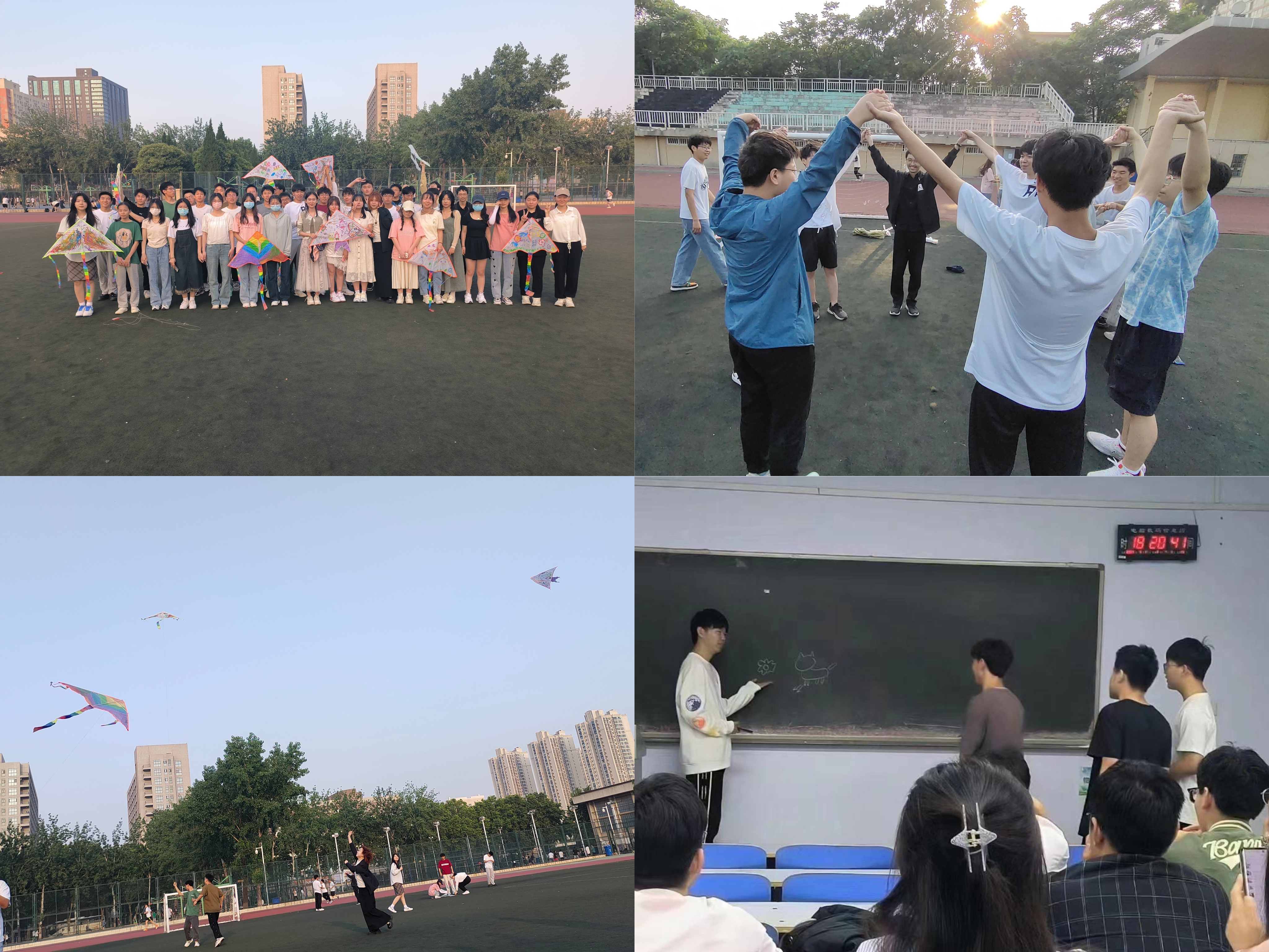 “解放双手,放飞梦想”活动包含“解手链”破冰环节和手工“DIY风筝”环节。在破冰游戏环节,同学们围成一个圆圈,用右手握住与自己不相邻的同学的右手,用左手握住另一个与自己不相邻的同学的左手。在不松开手的情况下,把手链网解开,以完成游戏。通过“解手链”环节,帮助同学们获得身心放松,加强了同学们之间的交流与合作。在“DIY风筝”环节,每位同学都可以充分发挥想象力,用手中的画笔,绘出对春天的期许,绘出对美好愿望的寄托。绘画结束后,同学们一起到操场放飞风筝,放飞梦想。“以‘团’为赢,共创胜利”活动,将同学们2人一组,分成10个小组,逐组完成“你来画我来猜”游戏,负责画画的同学画出极具个人风格的画作并辅以丰富的肢体动作,竭力表达出画中意思,负责猜词的同学持续进行头脑风暴。同学们在游戏中充分表达自我,乐在其中,受益非凡。