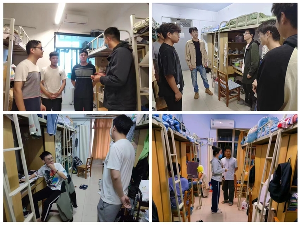 在走访中,辅导员们对学生宿舍室内地面、物品摆放等卫生状况以及可能发生的安全隐患进行重点检查,并强调宿舍的卫生情况、禁止使用违章电器以及保证用电安全的重要性,提醒同学们要严格遵守学校宿舍管理规定和校规校纪,维护宿舍良好的生活秩序,切实提高自身安全意识。同时,辅导员们详细了解同学们的学习状况、生活情况,询问同学们的切实需求,叮嘱同学们保持良好的卫生习惯,做好个人健康防护,增强新冠、甲流、水痘等各类传染病的预防,当好自己健康的“第一责任人”。