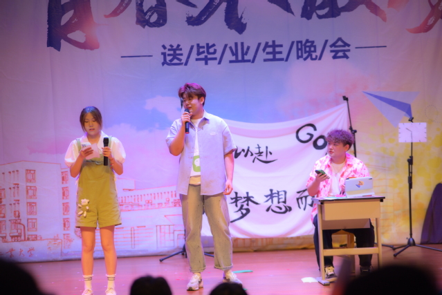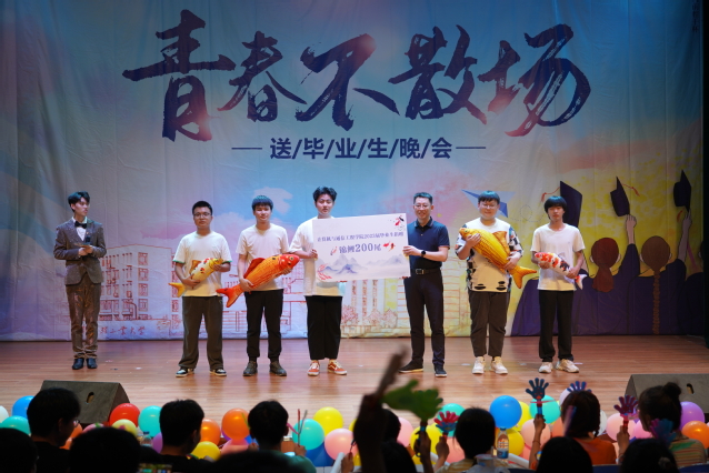 晚会伊始,学院党委书记宋文军上台致辞并主持“前程似‘锦’,‘鲤’想绽放”捐赠仪式,向同学们送去诚挚的毕业寄语:希望同学们奋勇追梦、大步向前,带着“为之则易,不为则难”的校训,仰望星空,脚踏实地,把青春的汗水挥洒在祖国的大地上。