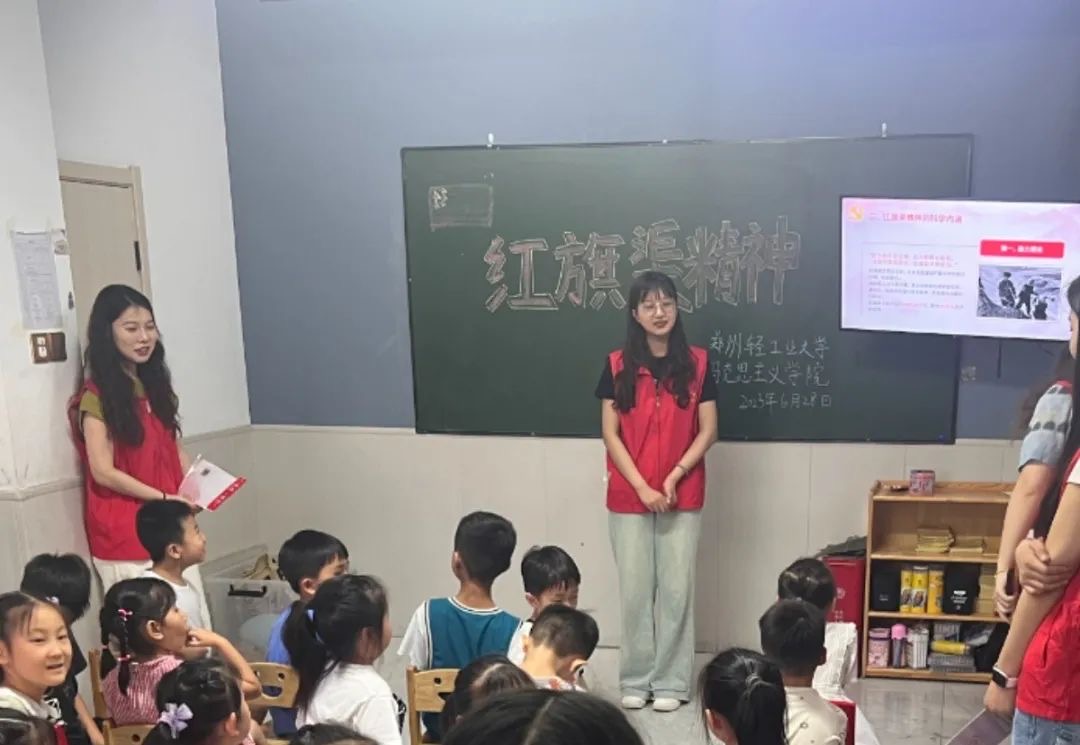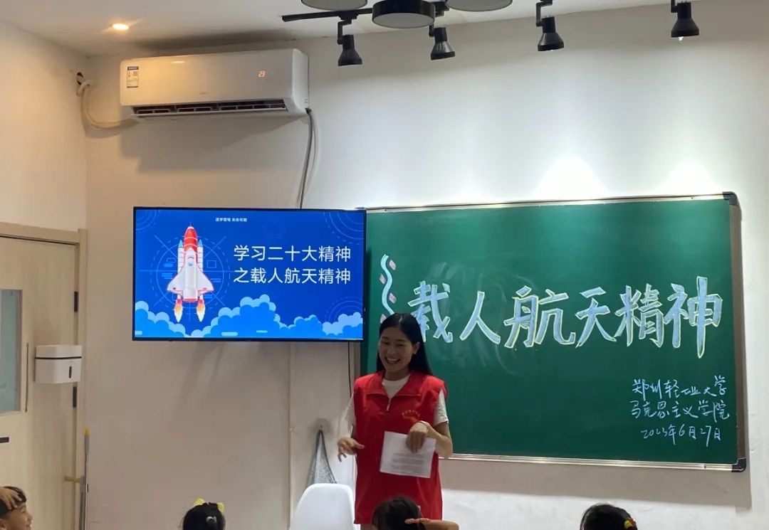 此次宣讲活动中,马克思主义学院志愿服务宣讲团成员根据各自的主题,采用视频、图片、互动等各种方式为孩子们进行讲解。童心向党单元向孩子们讲述了建党节的来历,革命先辈的英雄故事;航天精神学习单元则带着孩子们一起解锁成为航天员所需的特质,丰富孩子们的航天知识,激发孩子们的学习热情;“红旗渠”精神引导激励孩子们传承弘扬自力更生、艰苦创业、团结协作、无私奉献的宝贵精神;随后的安全课堂里,宣讲员志愿者还给孩子们开展了反校园霸凌及防溺水主题的安全教育讲座,提高孩子的自我保护意识和能力,让孩子们拥有一个健康快乐的童年!