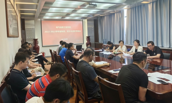 根据学校《郑州轻工业大学辅导员工作考核办法(试行)》及《郑州轻工业大学班主任管理办法(暂行)》,为做好2022-2023学年学院辅导员、班主任考核工作,6月29日下午,电气信息工程学院在西二楼301召开了辅导员、班主任考核述职会,学院全体领导班子成员、各系主任、全体专兼职辅导员和班主任参加。会议由学院党委副书记万慧杰主持。