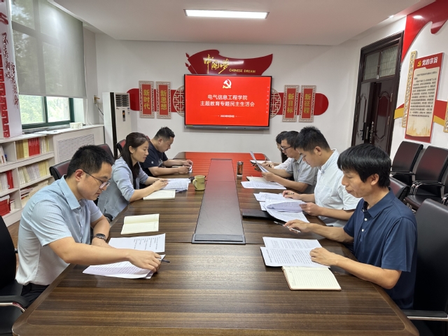 按照学校党委有关要求,9月8日下午,电气信息工程学院领导班子在西二楼202会议室召开学习贯彻习近平新时代中国特色社会主义思想主题教育专题民主生活会。会议由院长和萍主持。