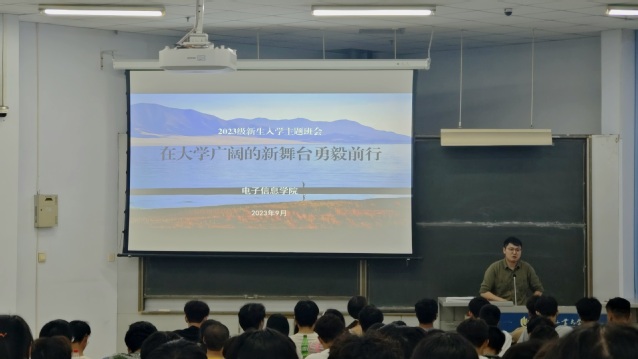 9月18日下午,电子信息学院在教三楼202开展“新生开学第一课”主题班会,2023级新生辅导员王伟夙、全体2023级本科生参与了活动。