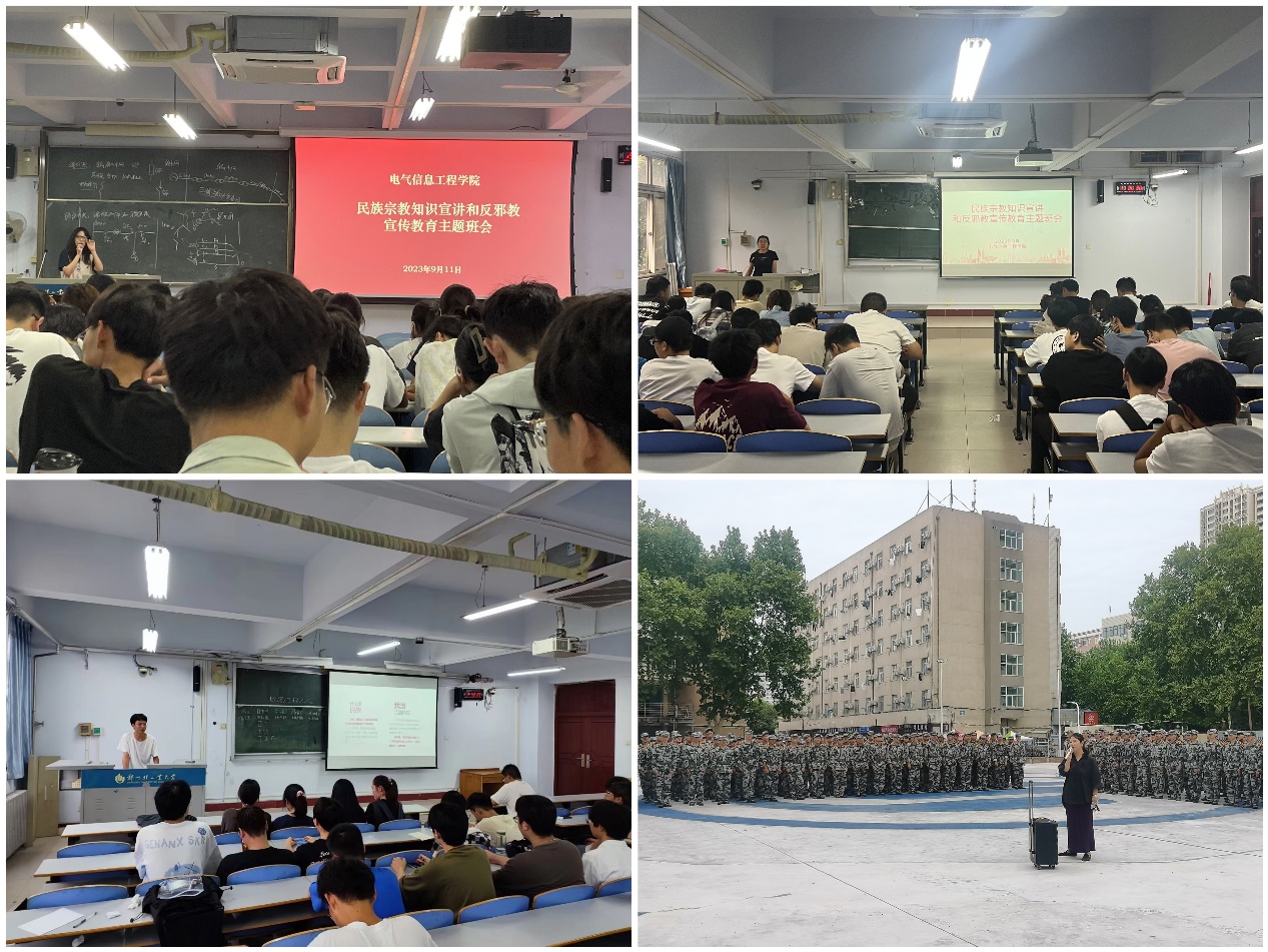 9月11日至9月21日,电气信息工程学院在各年级广泛开展“民族宗教知识宣讲和反邪教宣传教育”主题班会活动。
