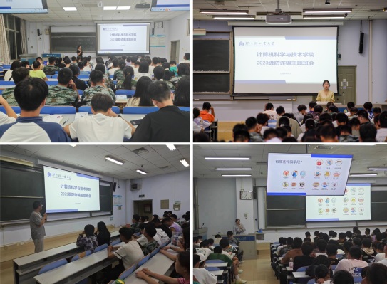 为切实筑牢校园反诈安全防线,进一步树立新生防诈意识,加强大学生在生活中自我预防、自我保护、自我应对的能力,计算机科学与技术学院于近期开展了2023级新生反诈骗主题班会。班会由辅导员老师主持,全体新生参会。