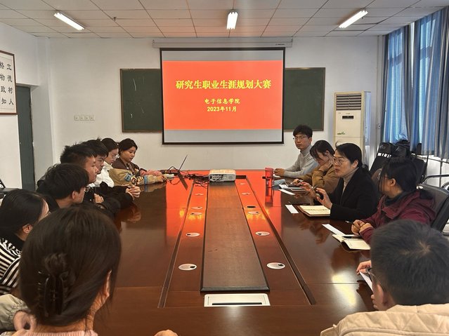 为提高研究生职业生涯规划意识,11月10日,电子信息学院在四教510会议室举办了2023年研究生职业生涯规划大赛。学院辅导员老师担任评委,各年级学生代表参加了会议。