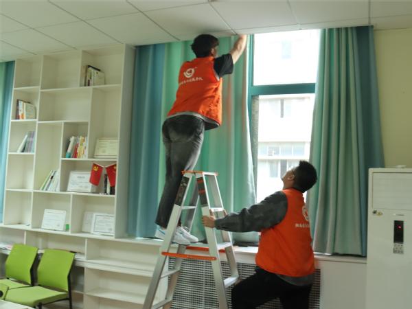 活动伊始,学院团委在各年级发起“劳动,我们在行动!”志愿服务项目,内容包括窗帘清洗和实验室清洁两项活动,目的在于号召青年学生通过参加服务性志愿活动,进一步培育尊重劳动、崇尚劳动、热爱劳动的观念。志愿服务活动得到学院广大青年学生积极响应。大家分工明确,有人拆窗帘,有人洗窗帘,有人装窗帘,有的清理实验室物品,有的擦桌子、整理柜子,有的扫地、拖地。在同学们的共同努力下,办公场所、实验室干净整洁、焕然一新。