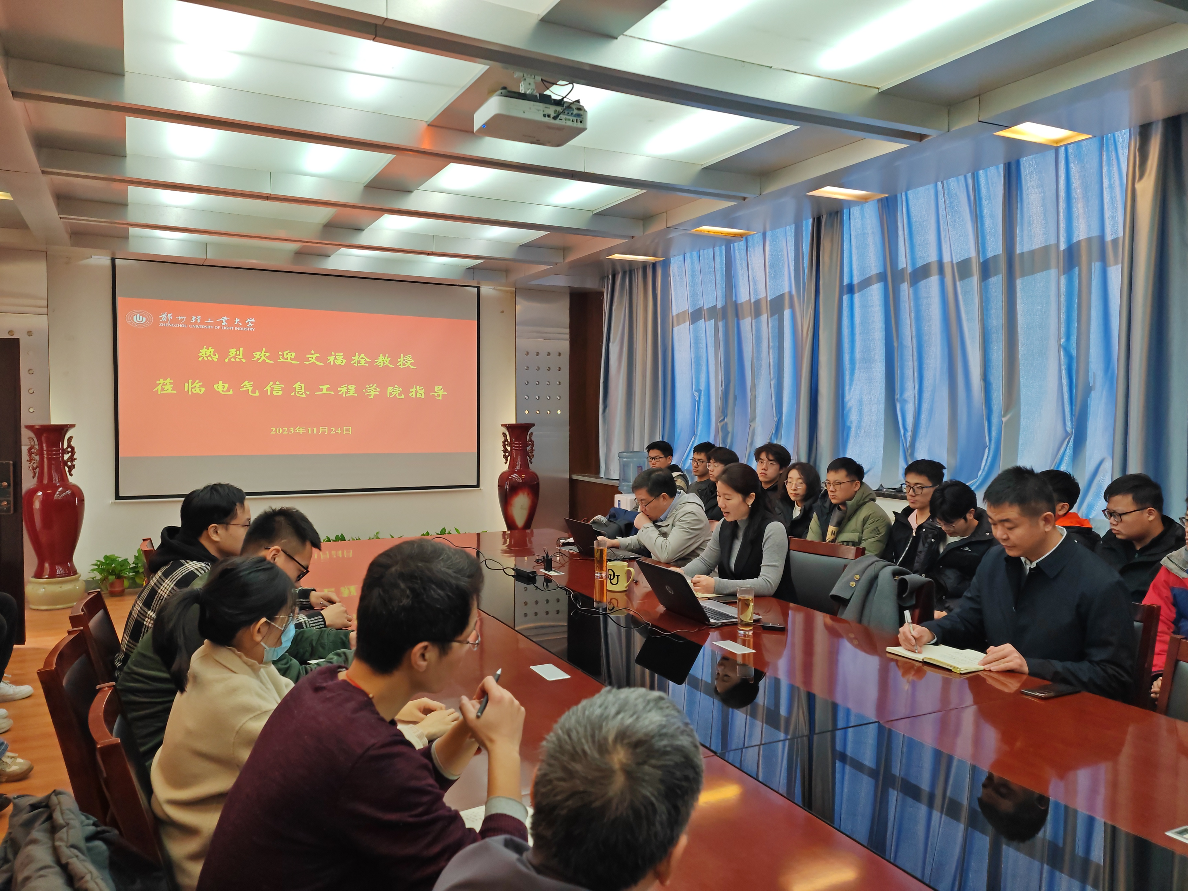 为助推青年教师和学生成长成才,促进学科交叉合作,营造浓厚的学术交流氛围,11月24日上午,电气信息工程学院邀请IEEE Fellow、电力系统与电力经济专家、浙江大学电气工程学院博士生导师文福拴教授在西二楼301会议室做了题为《“源网荷储一体化”项目的背景、现状与展望》的学术讲座,讲座由和萍院长主持。