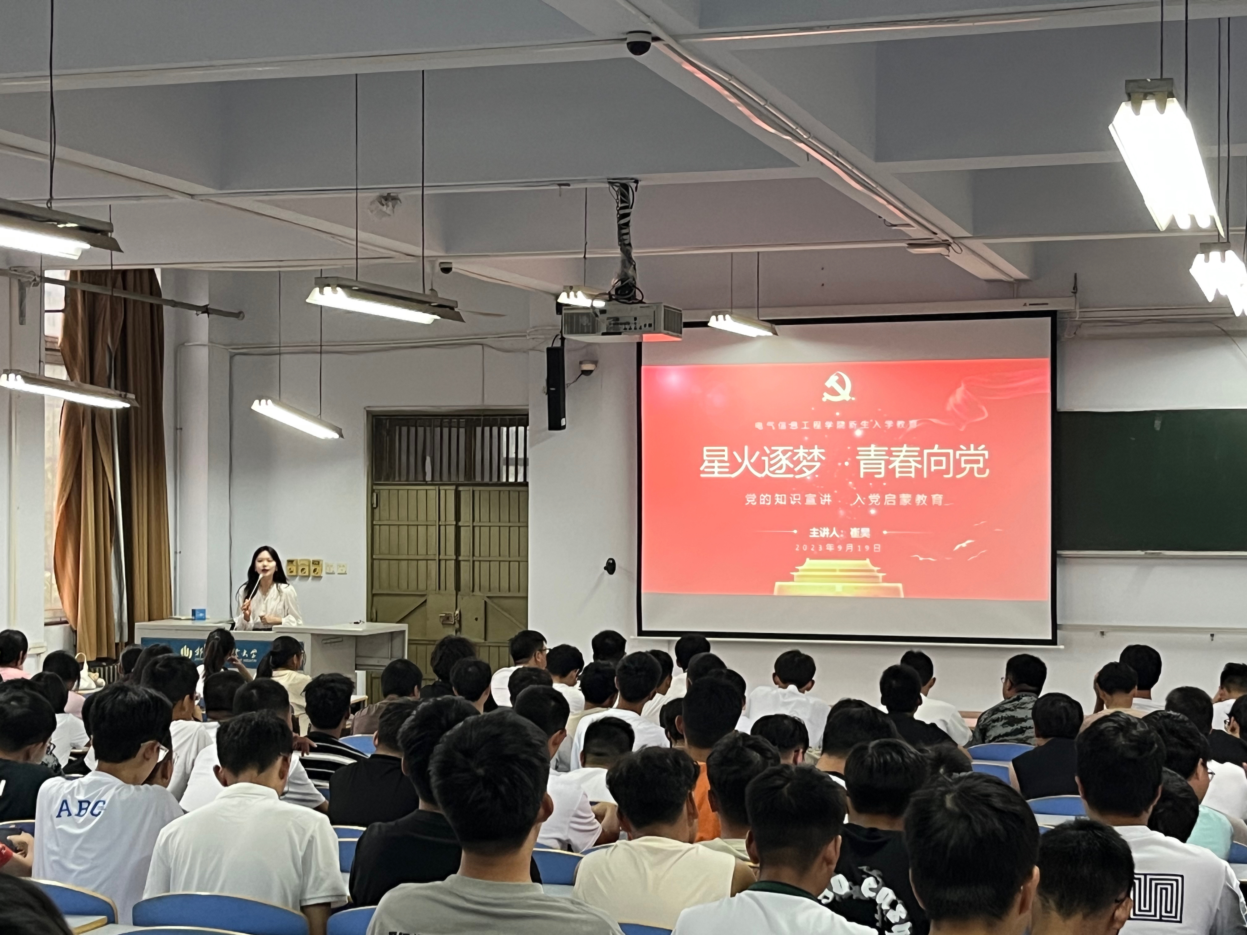 9月19日上午,电气信息工程学院在西五楼501开展2023级新生“星火逐梦,青春向党”党的知识宣讲。电气信息工程学院组织员崔昊、党员管理中心成员和全体2023级新生参加了此次宣讲活动。