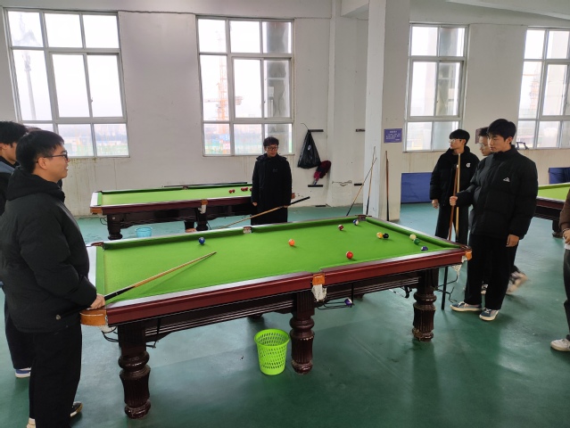 为丰富学生课余生活,增强学生身体素质,12月19日下午,计算机科学与技术学院在禹州实习实训基地举办台球友谊赛,学院2022级移动软件专业学生参加了比赛。