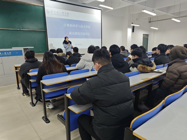 12月25日下午,计算机科学与技术学院在计算机楼118教室召开2024届毕业班就业联络员培训会。学院党委副书记刘放美、就业专职老师、毕业班辅导员以及2024届毕业班班级就业联络员参加了此次培训。