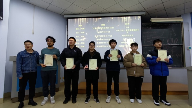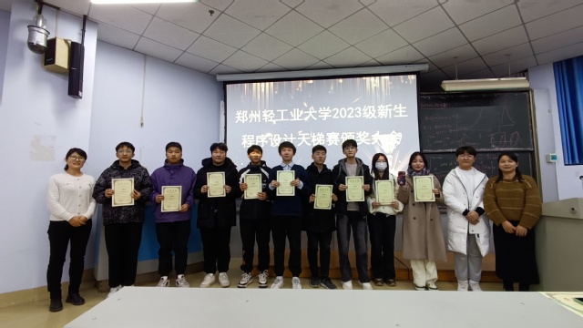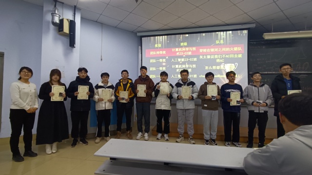 天梯赛竞赛题目分3个梯级:基础级、进阶级、登顶级,大赛的区分度、挑战性、趣味性和观赏性都很高,既考察了学生们的程序设计基本功、也考察了学生们数据结构与算法等计算机科学核心能力。要想获得高分,学生们需具有极强的算法设计能力和解决复杂问题的能力。比赛中,每班选出10位同学作为一个战队,大家团结合作、相互勉励、共同提高。经过激烈角逐,计算机科学与技术23-03班荣获团队冠军、人工智能23-02班、计算机科学与技术23-01班、人工智能23-01班荣获团队一等奖。计算机科学与技术23-01班叶子豪同学、行业应用软件23-05班易平川同学和计算机科学与技术23-02班薛晓煜同学荣获个人特等奖。学院党委副书记刘放美、C语言课程组负责人李晔老师、朱会东老师、常化文老师和全体新生辅导员一起为同学们颁发了奖状。
