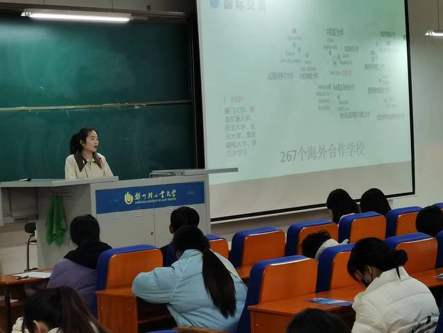 会上,谈红玲处长首先为大家介绍了新形势下国际化能力的重要性以及当前就业形势,让大家理解提升自身职业竞争力的重要性。接着详细介绍了我校与美国、英国、澳大利亚、韩国、爱尔兰、波兰等国家的学校开展的国际合作交流项目,讲解了国际合作交流项目的优势、课程衔接、项目费用以及学生入学标准等方面的内容。尤其重点讲解了2024年韩国仁荷大学硕博奖学金项目,介绍了韩国仁荷大学的基本情况、合作交流项目的内容和课程安排。谈红玲强调同学们多参与国际项目不仅可以拓宽专业视野,提升科研能力,而且对自身英语表达能力大有裨益。同时介绍了学校对参与国际合作交流项目的相关资助政策,希望同学们珍惜学校提供的机会,积极踊跃参加各类国际交流合作项目,拓宽学术视野,不断提升自己的国际化能力。