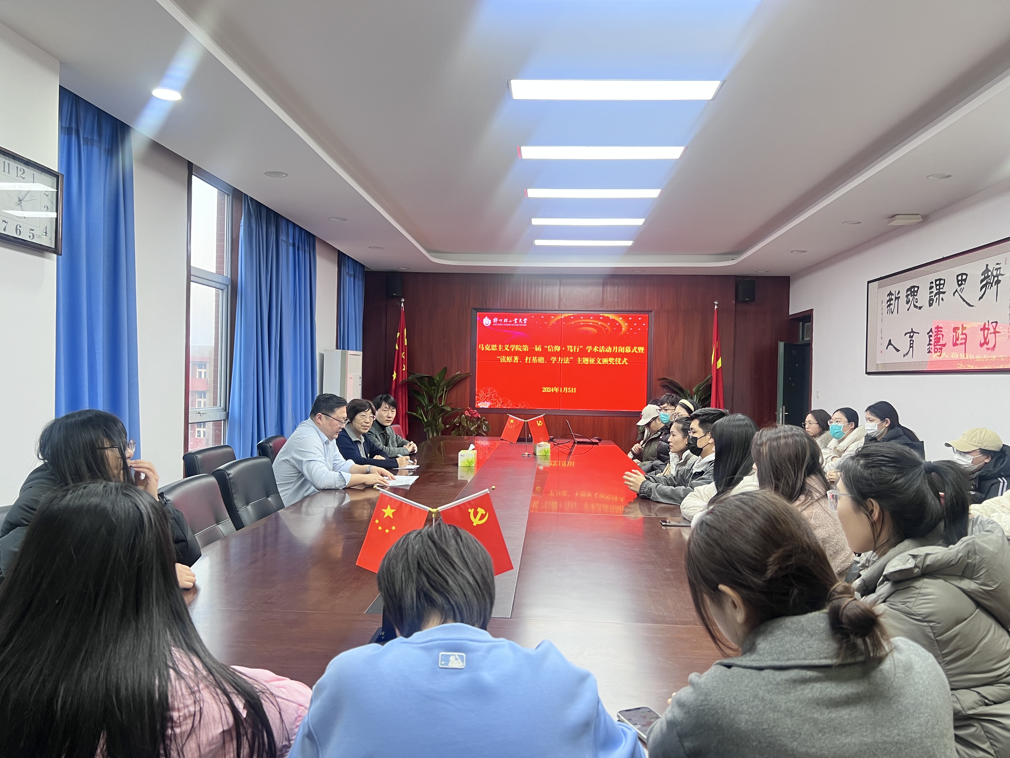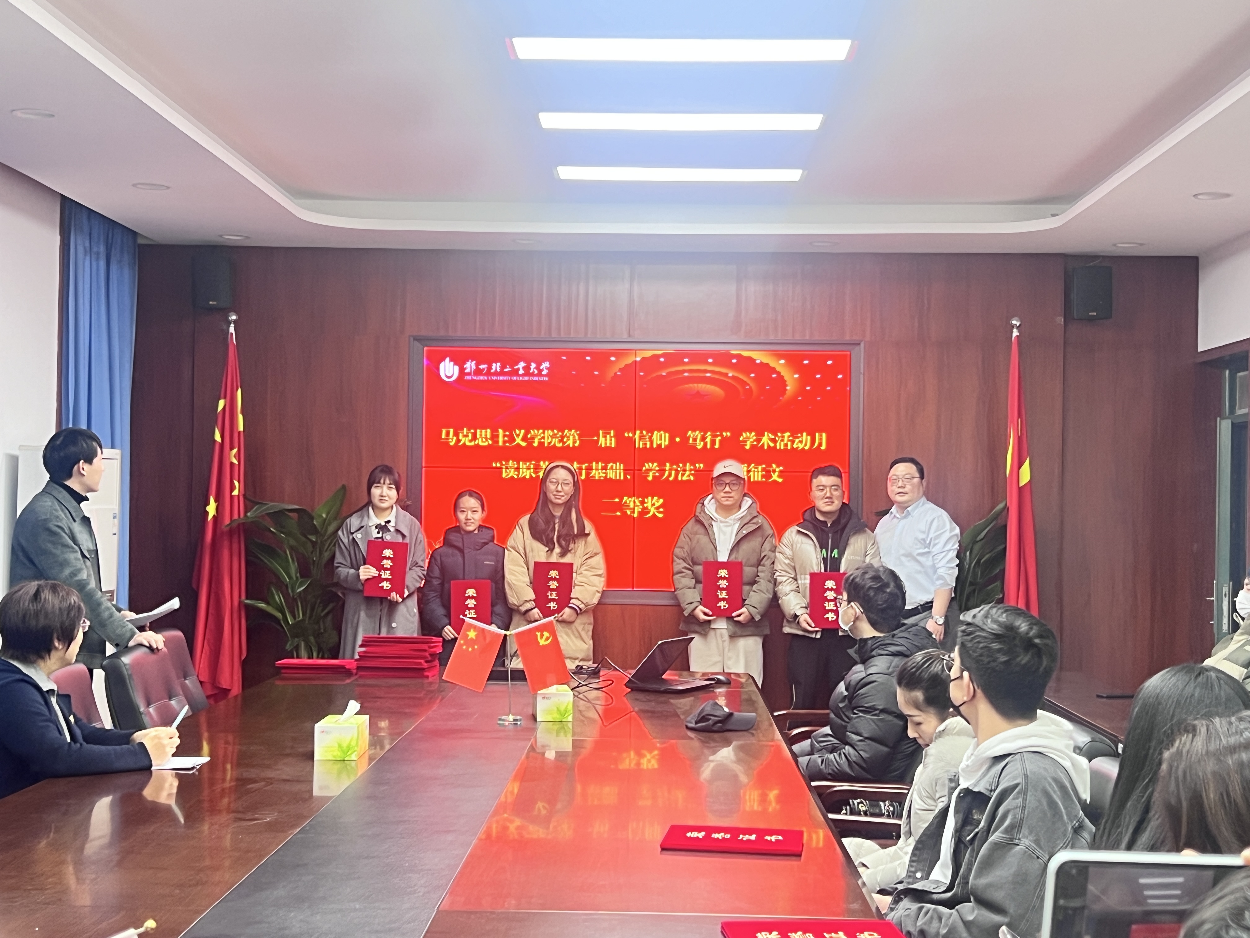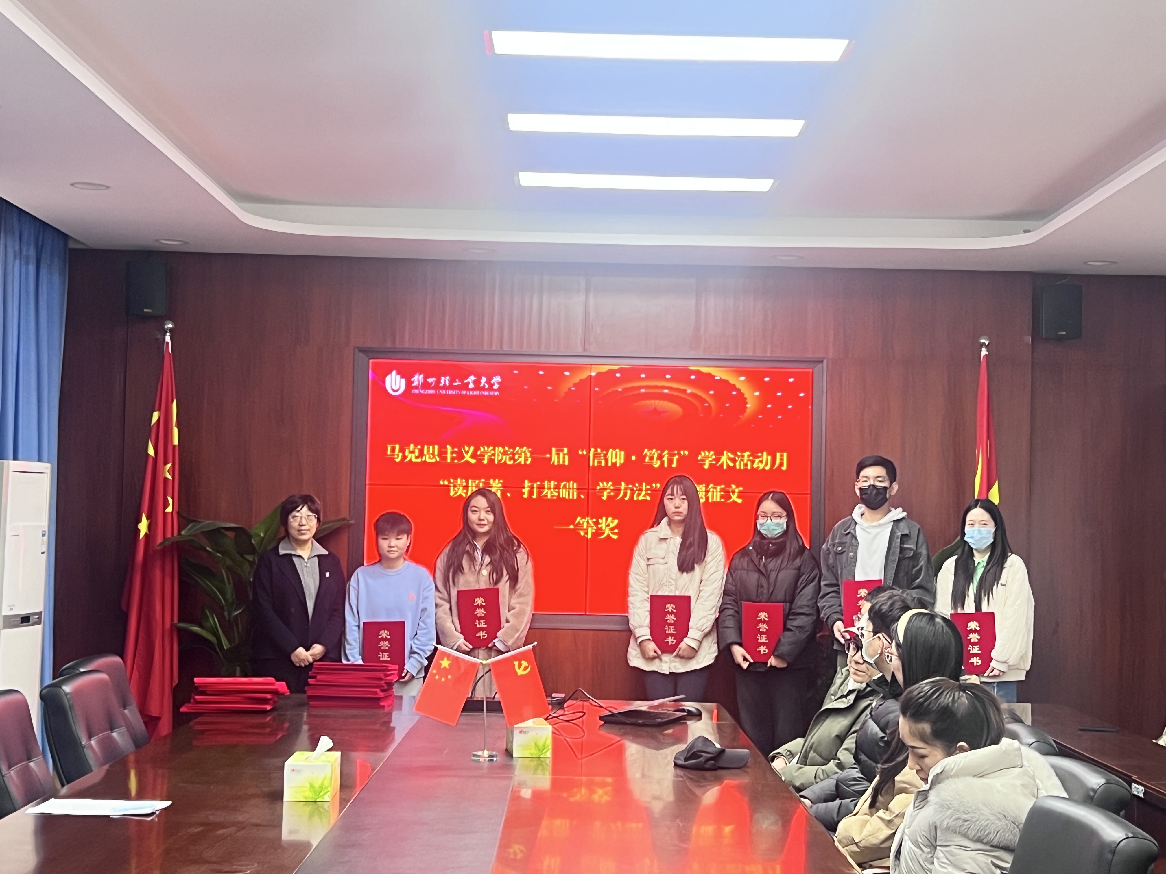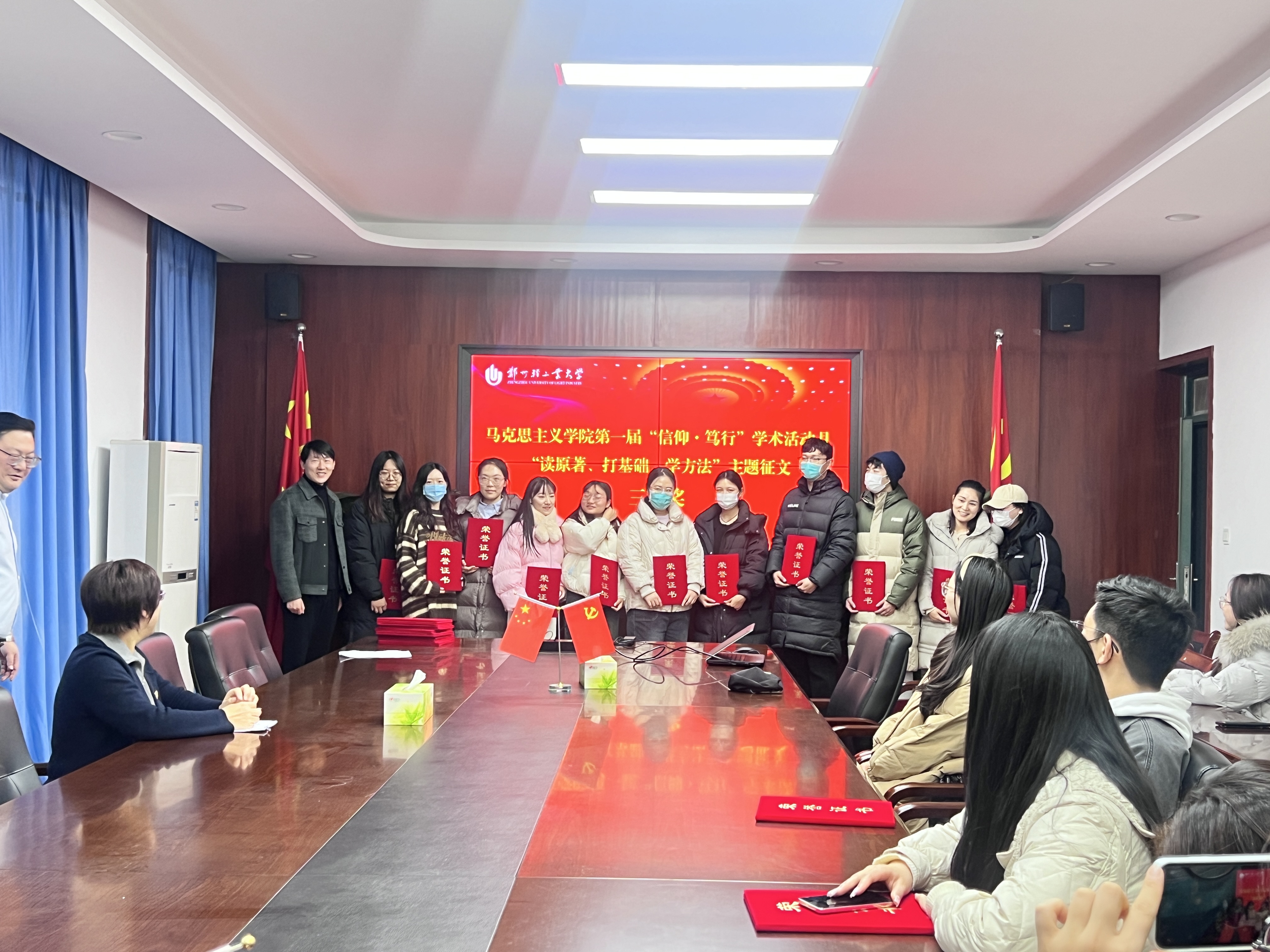 1月5日下午,马克思主义学院第一届“信仰·笃行”学术活动月闭幕式暨“读原著、打基础、学方法”主题征文活动颁奖仪式在马克思主义512会议室举行。会议由杨晓副院长主持,马克思主义学院师生代表参加。