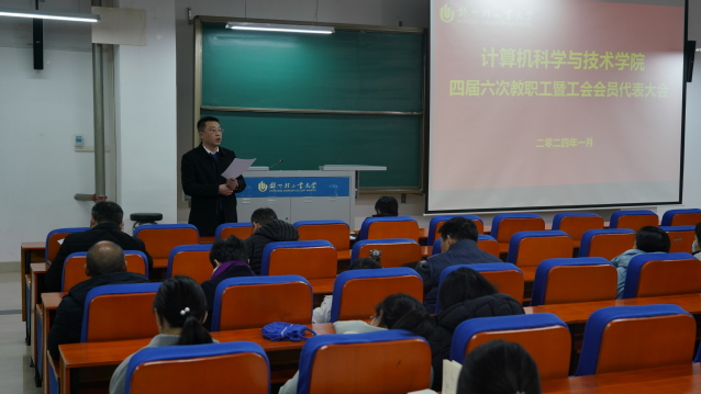 1月11日下午,计算机科学与技术学院召开四届六次教职工暨工会会员代表大会。学院全体教职工(工会会员)代表参加了会议,会议由学院党委书记宋文军主持。