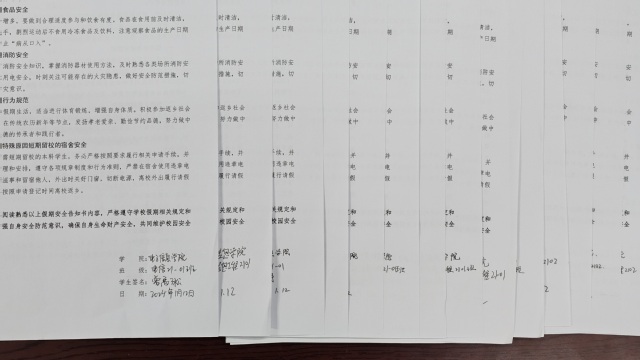 会上,辅导员针对即将到来的期末考试,带领学生学习了《郑州轻工业大学考场规则》,结合最新版《郑州轻工业大学监考员操作规程》中关于考试作弊的违法行为及相应的处罚规定,着重强调了诚信考试的重要性和考试作弊的严重后果。鼓励同学们以诚信的品德、平和的心态,认真复习,坚决打消违纪作弊的侥幸心理。随后,辅导员结合我校《关于做好2024年寒假学生安全教育及管理工作的通知》内容,组织全体学生签订《假期学生安全告知书》,从自身安全意识、人身财产安全、交通安全、食品安全、消防安全、网络安全、行为规范等方面进行强调,提醒同学们增强自我防范意识,合理安排假期生活。