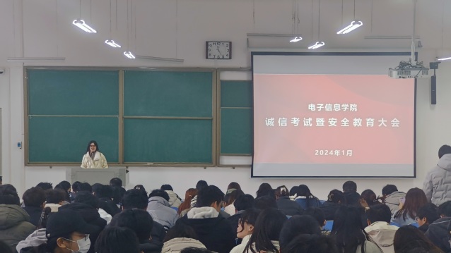 为严肃考风考纪,树立学生的诚信意识,加强寒假期间学生的安全教育和管理工作。近日,电子信息学院分年级召开了期末诚信考试暨安全教育大会。
