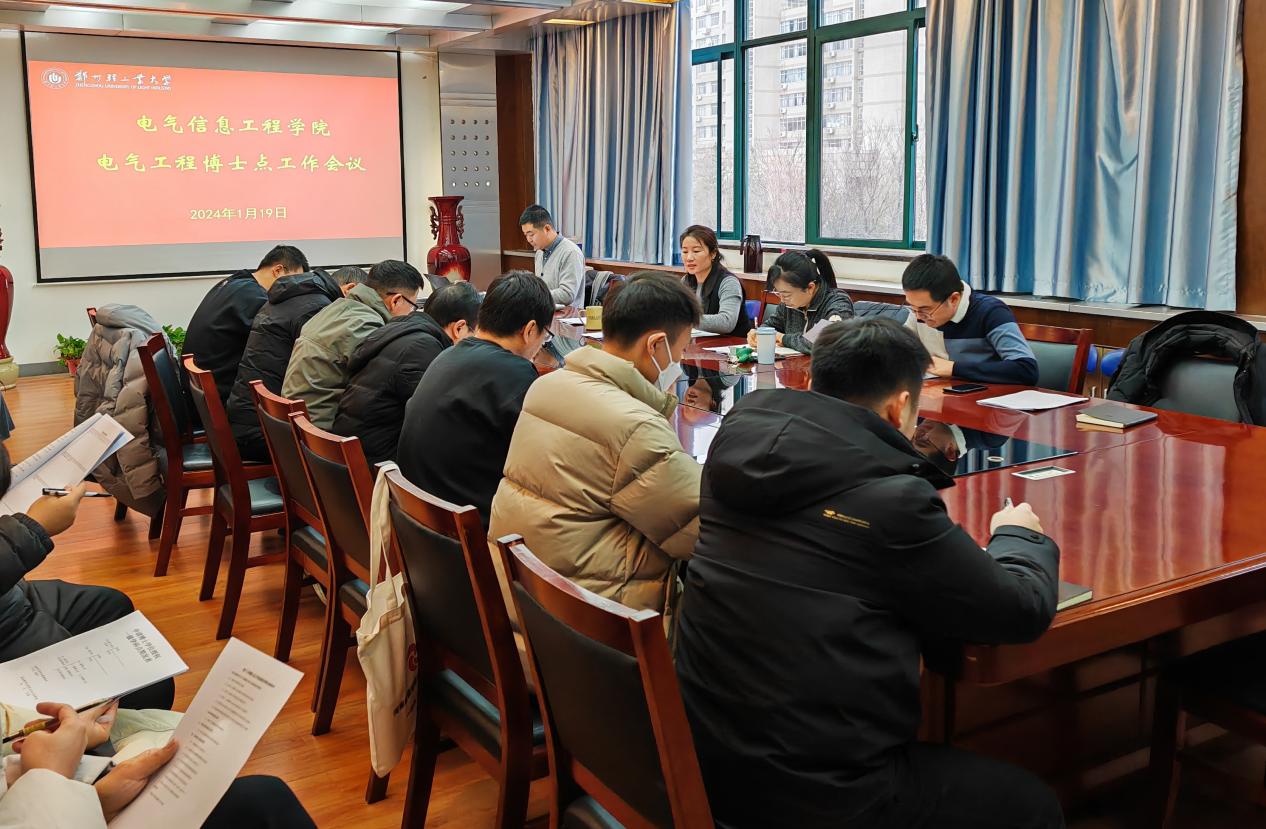 为扎实推进电气工程博士点申报工作,2024年1月19日上午,电气信息工程学院在西二楼301会议室召开了电气工程博士点申报工作会议。会议由和萍院长主持,学院班子成员及博士点建设专班成员参加了会议。