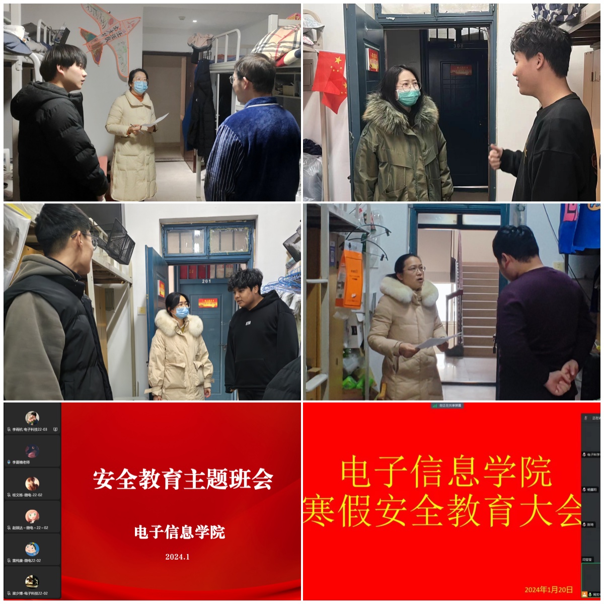 为进一步贯彻落实全体本科生及研究生寒假安全教育工作,增强学生安全意识和自我防范能力。1月20日,电子信息学院多途径开展寒假安全教育活动。